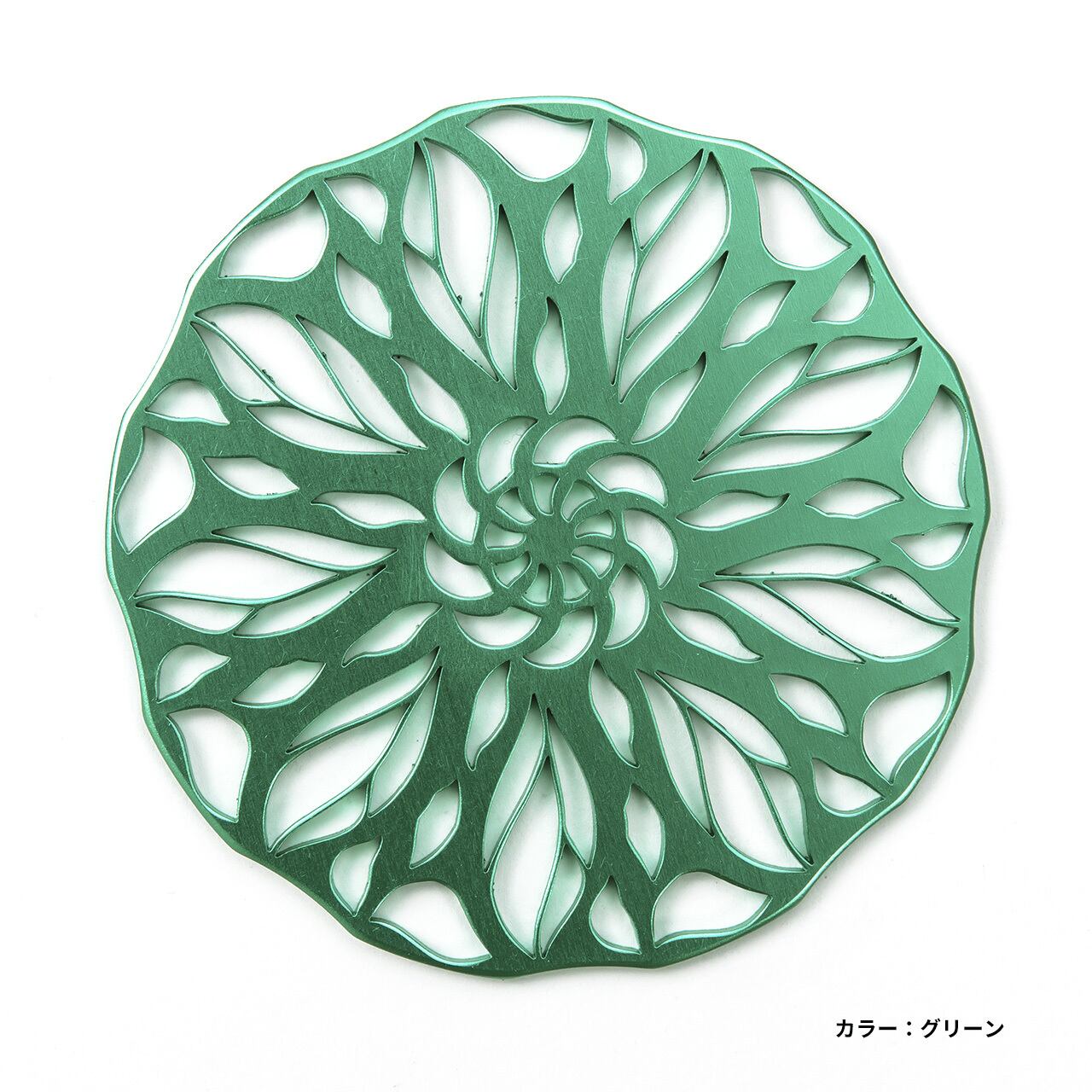 カラーアルマイト処理を施し、コースターはもとより部屋のインテリア等飾りとしても使ってみてはいかがでしょうか。